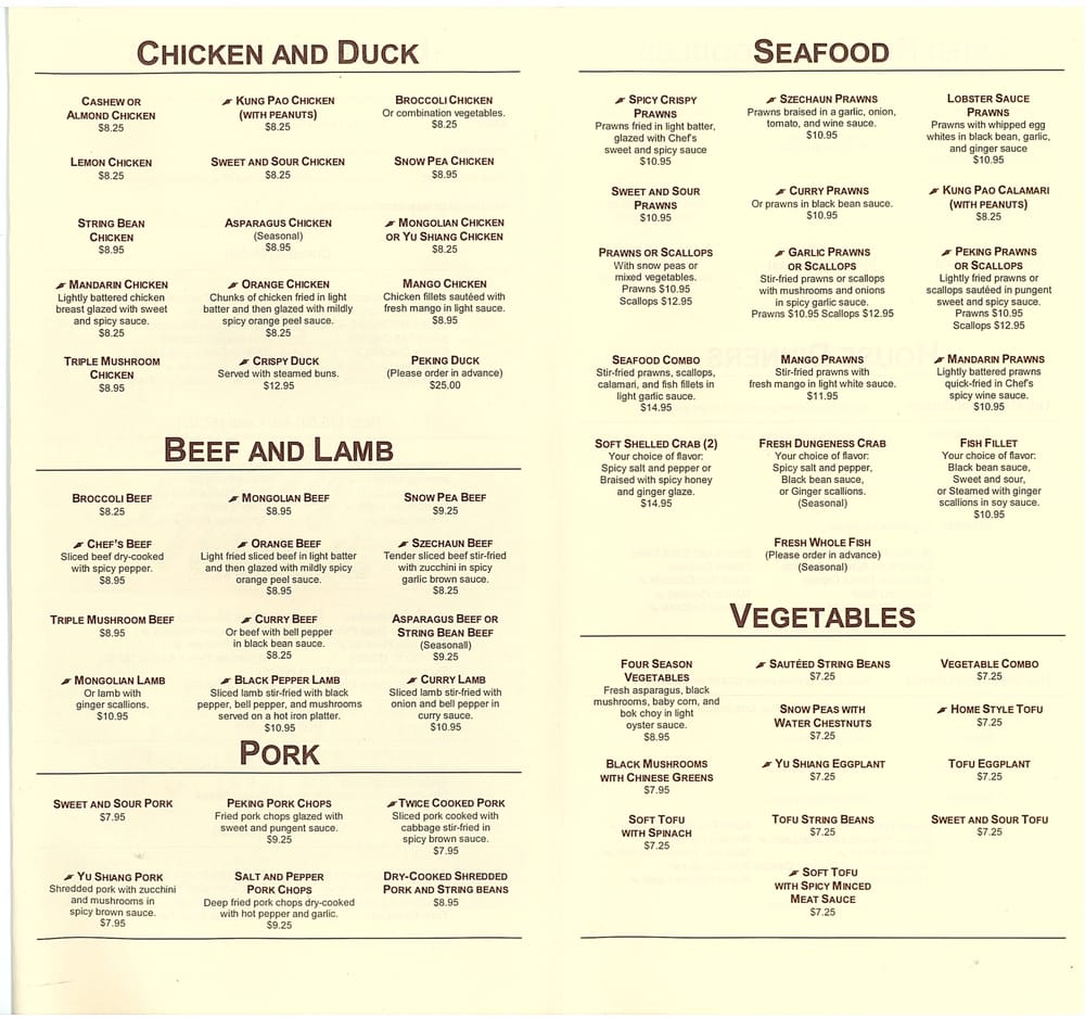 Spicy. Tender beef, scallops, prawns, and peanuts stir-fried with chef's spicy brown sauce.